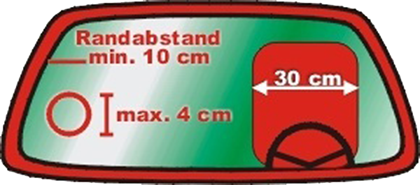 Da die in modernen Fahrzeugen verwendeten geklebten Scheiben auch tragende Karosseriefunktionen übernehmen, dürfen Schäden innerhalb eines Bereich von 10 cm vom Außenrand der Scheibe oder größer als 4 cm Durchmesser nicht repariert werden. Außerdem darf der Schaden nicht im rot markierten Hauptsichtfeld des Fahrers liegen, da die Reparaturstelle geringfügig abweichende optische Eigenschaften hat.
